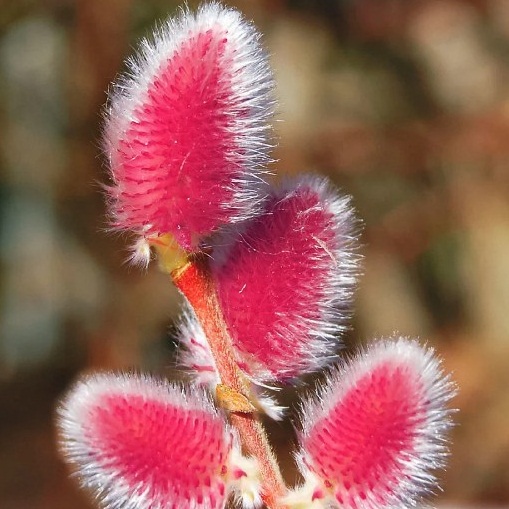 Ранней весной покрывается крупными розовыми сережками, на фоне темных побегов.